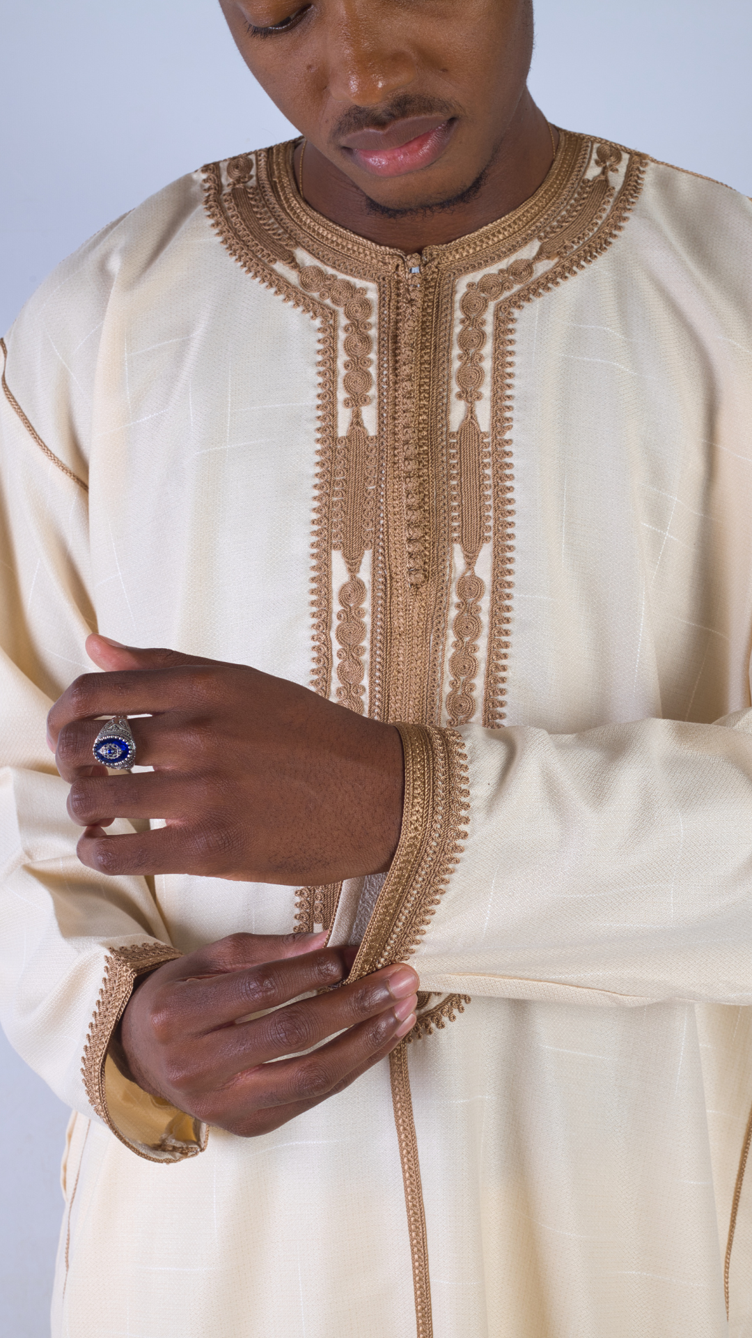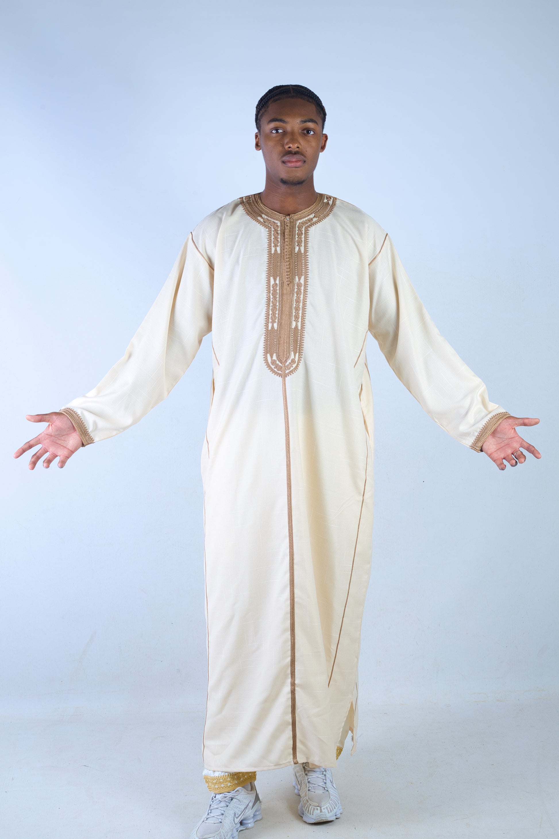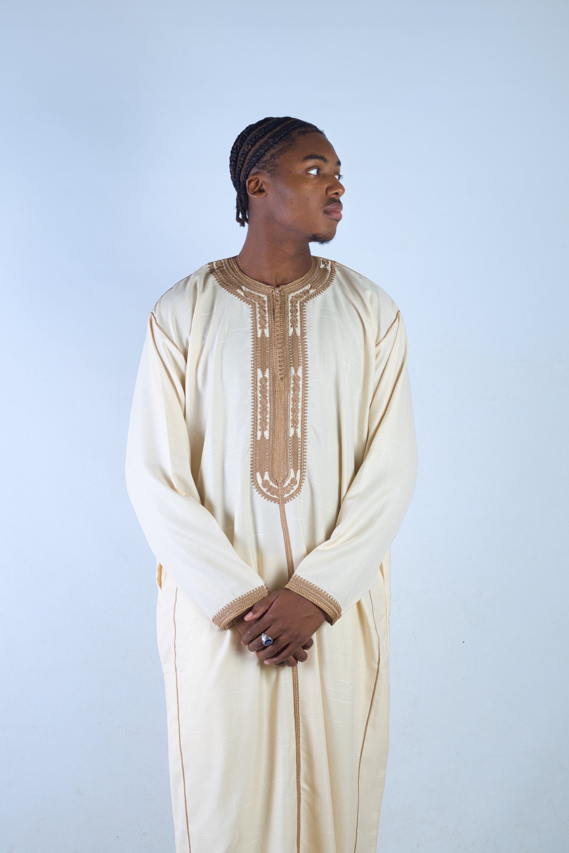 Un bleu profond qui rappelle la sérénité des nuits étoilées. Chaque qamis est confectionné avec soin, pensé pour accompagner vos moments importants comme vos instants simples du quotidien.