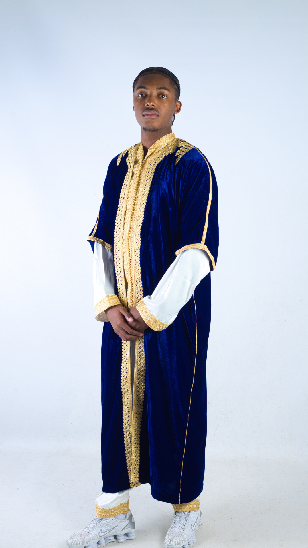 Un bleu profond qui rappelle la sérénité des nuits étoilées. Chaque qamis est confectionné avec soin, pensé pour accompagner vos moments importants comme vos instants simples du quotidien.